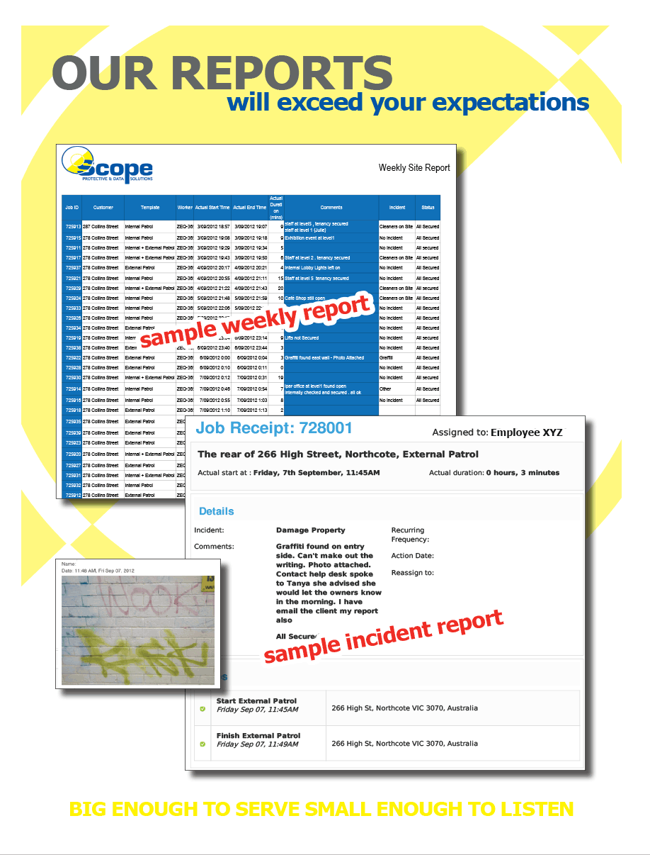 Our officers are equipped with a latest mobile service application allowing all reports to be generated electronically, populated with all the relevant information in one central legible electronic report.